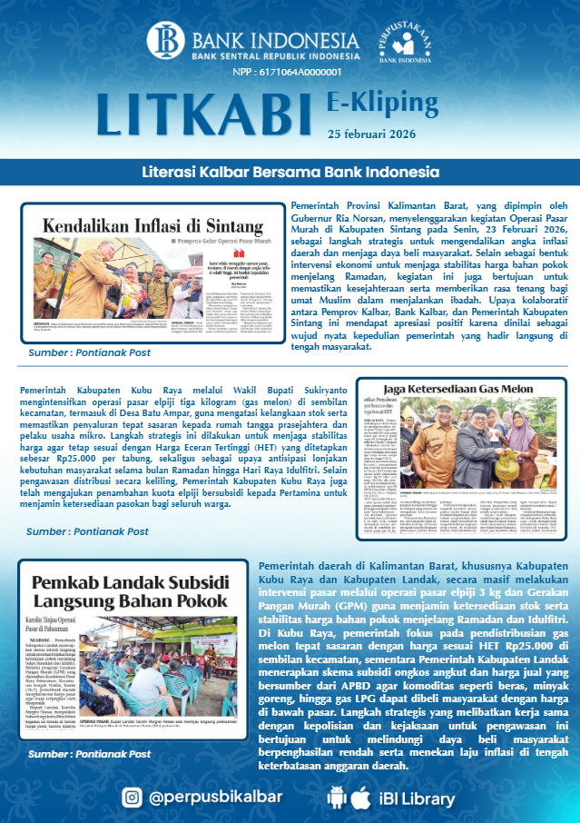 LITKABI (Literasi Kalbar Bersama BI) E-Kliping : 25 Februari 2026