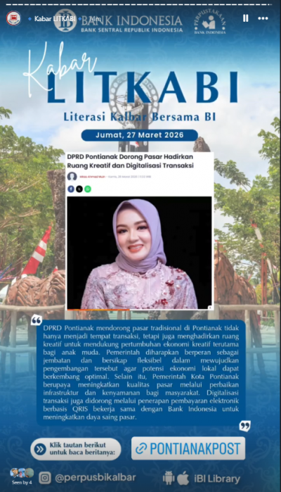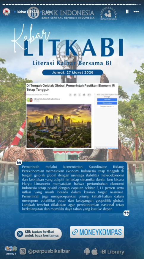 Yuk, simak Kabar Litkabi di Instagram Story Perpustakaan BI Kalbar Setiap Harinya, ruang literasi digital Kalimantan Barat bersama Bank Indonesia.