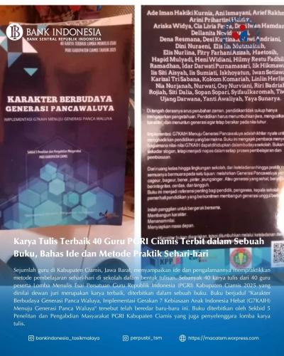 Sebanyak 40 guru PGRI Ciamis berhasil menerbitkan karya tulis dalam bentuk buku yang membahas berbagai ide dan metode praktik pembelajaran sehari-hari, sebagai wujud peningkatan literasi dan inovasi di dunia pendidikan.